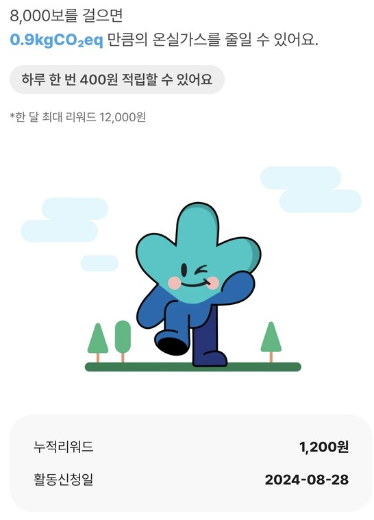 1. 걷기: 하루 8000보를 걸으면 400원 적립